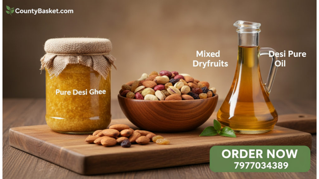 Our Top Picks County Gold - Groundnut Oil CountyGir - 100% Pure Bilona Ghee County Dryfruits - Premium Quality