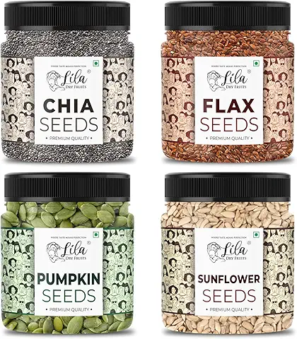 - LILA DRY FRUITS 4 Superseed Combo (Chia, Pumpkin, Sunflower & Flax) 250gms each (1kg total) Jar Pack |Immunity combo for Weight Loss | Mix Seeds for Eating | Diet Snacks | Superfood`